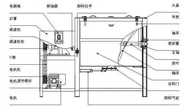 佛山除油粉不銹鋼臥式攪拌機結(jié)構(gòu)圖: