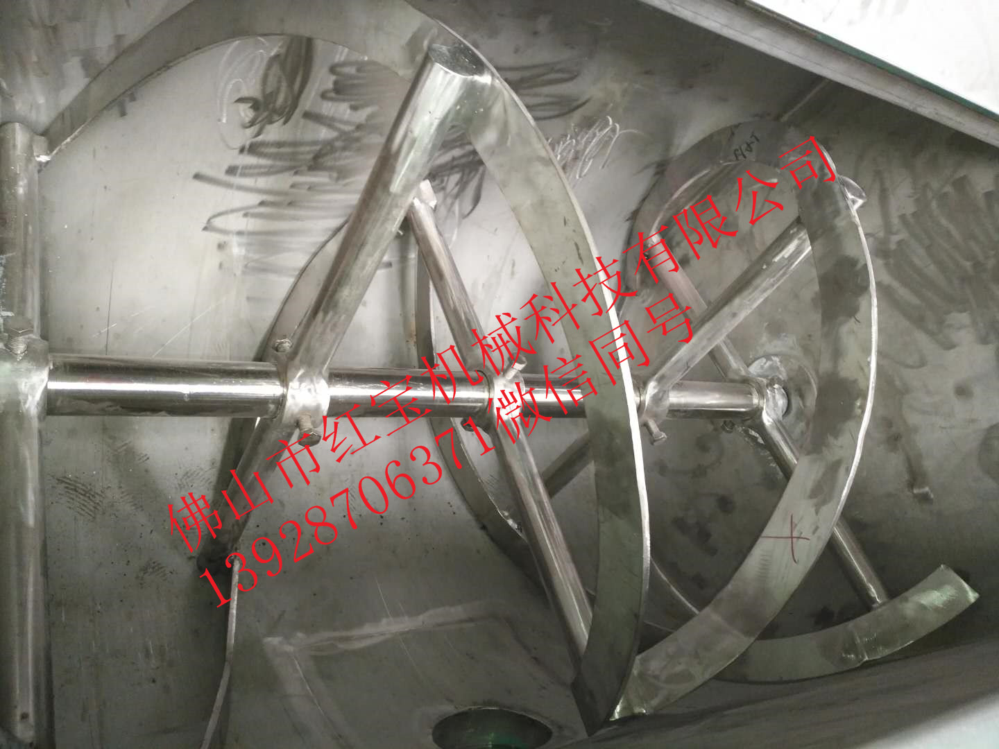 2.葉片采用加厚加寬不銹鋼制作,雙葉片設(shè)計,雙向S形螺旋槳葉,與桶壁距離精密計算,保證拌料迅速,均勻;
